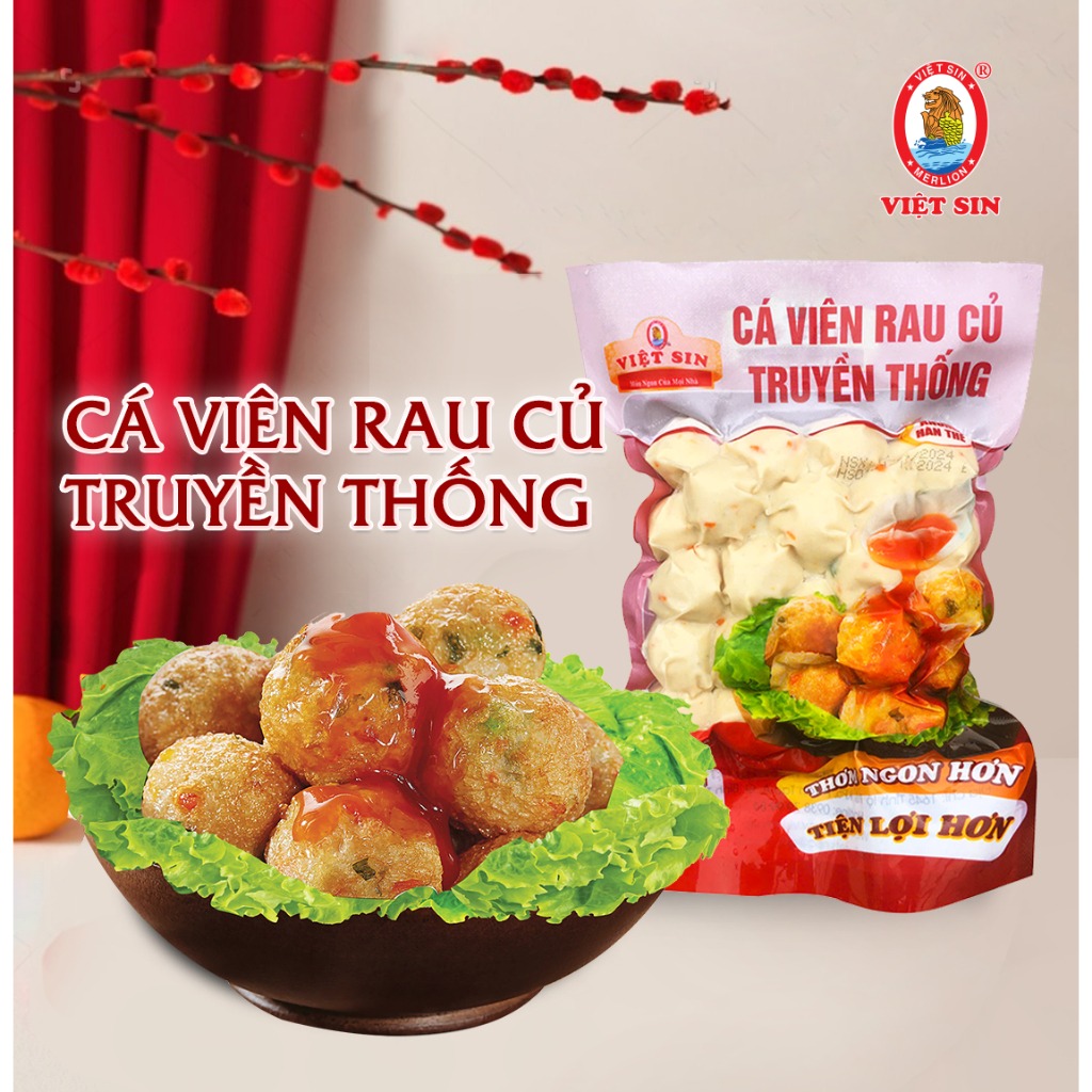 Cá viên rau củ truyền thống Việt Sin là sự kết hợp hài hòa giữa cá xay nhuyễn và các loại rau củ tự nhiên như cà rốt, đậu que, bắp non… tạo nên viên cá thơm ngon, giàu dinh dưỡng. Sản phẩm mang hương vị truyền thống, dễ chế biến, thích hợp cho các món lẩu, chiên, nấu canh hay ăn kèm mì.